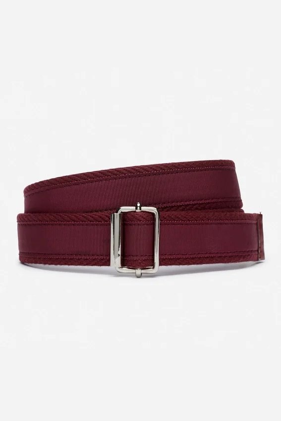 Cinturón de tela con lengüeta de cuero | Hebilla de rodillo deslizante de níquel brillante | 35 mm