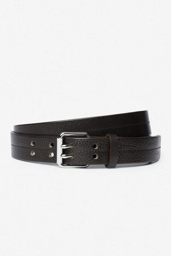 Ancho de 1,25″ | Hebilla de rodillo de doble punta con acabado plateado | Una sola presilla | Costura decorativa en el centro