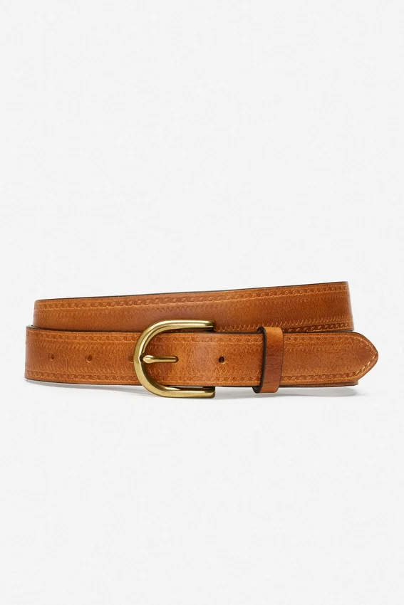 Para este estilo de cinturón, recomendamos seleccionar una talla más que la de su cintura habitual, es decir, si usa pantalones de talla 32W, seleccione un cinturón de talla 34.