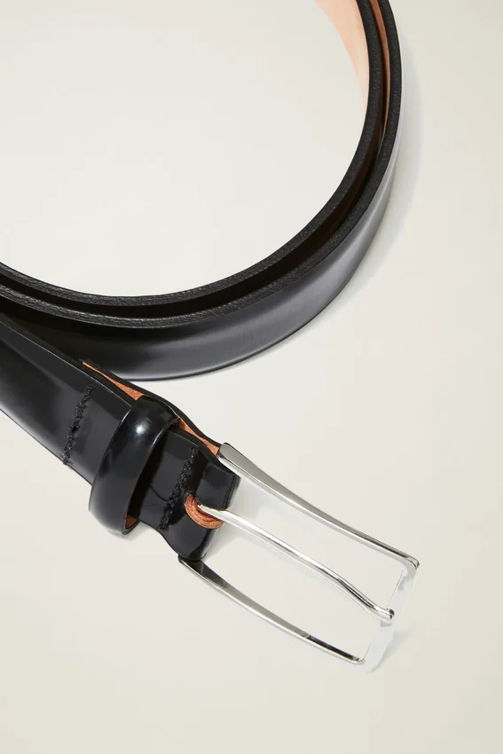 3,2 cm de ancho | Cuero ecológico de alta calidad y alto brillo | Forrado con cuero curtido vegetal | Borde biselado | Una sola hebilla