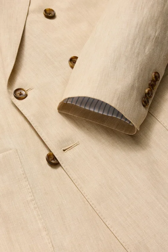 Blazer ligero para eventos en climas cálidos. Confección en lino italiano para bodas de verano.