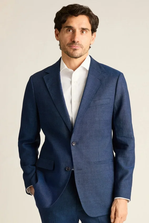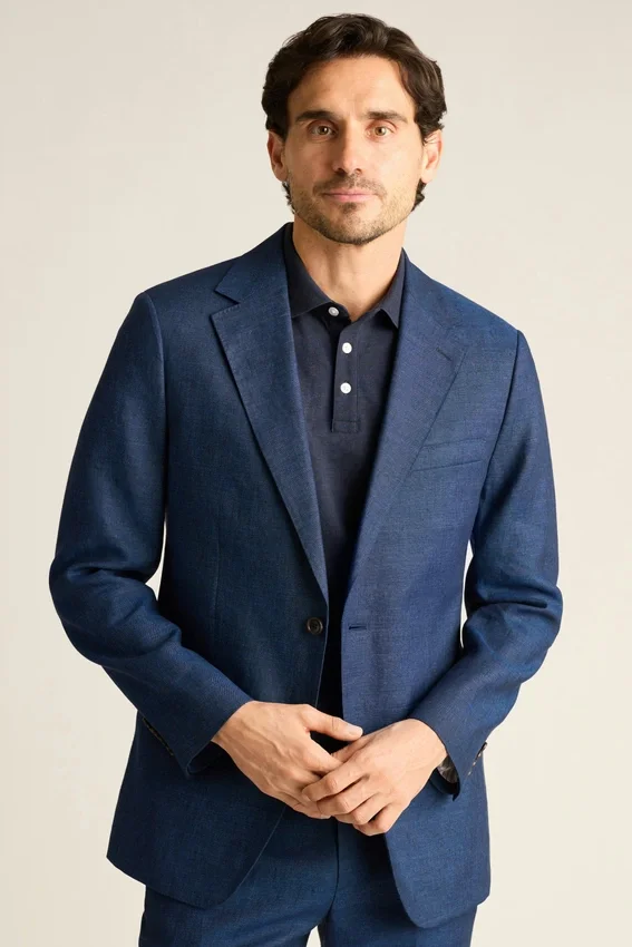 Confección ligera en lino italiano. Llévelo por separado o como traje completo con pantalones de vestir a juego.
