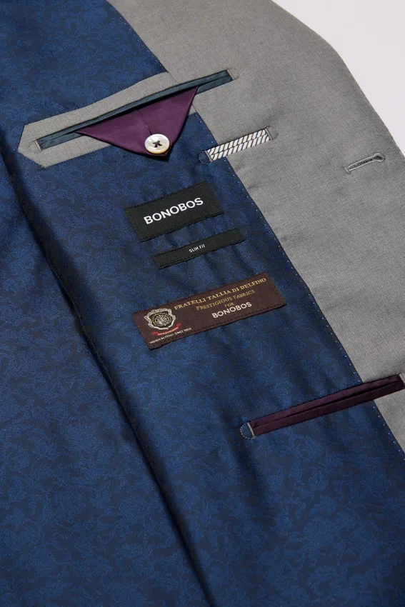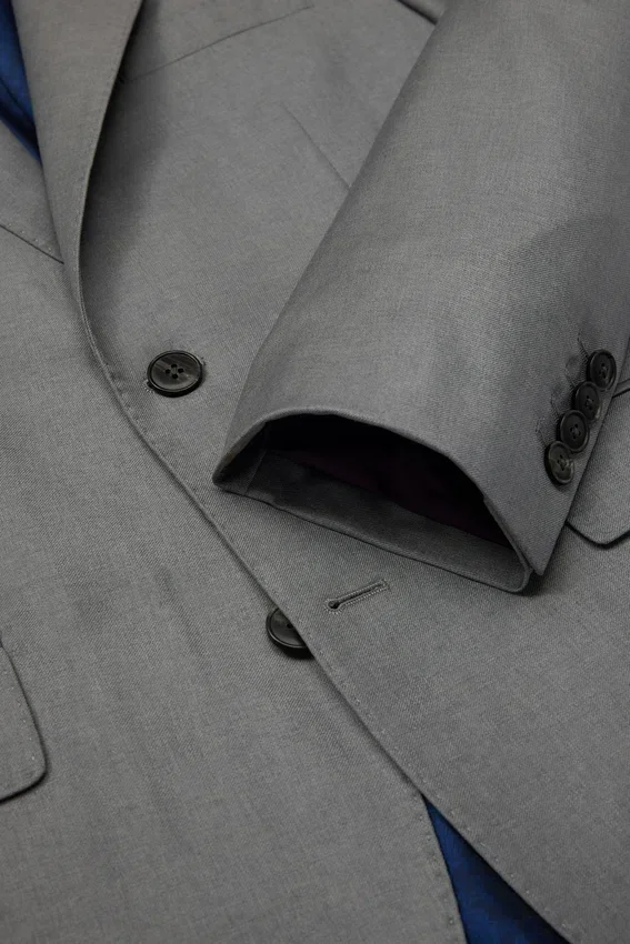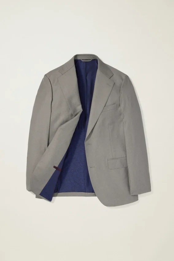 Lana Super 150S de la fábrica Fratelli Tallia Di Delfino en Italia | Construcción totalmente entelada | Costuras de punzada en todo el prenda | Botones funcionales de cuerno auténtico en los puños | Interior totalmente forrado con forro Bemberg personalizado | Forro de manga de Bemberg | Bolsillos interiores con botones de nácar auténtico| Aberturas traseras