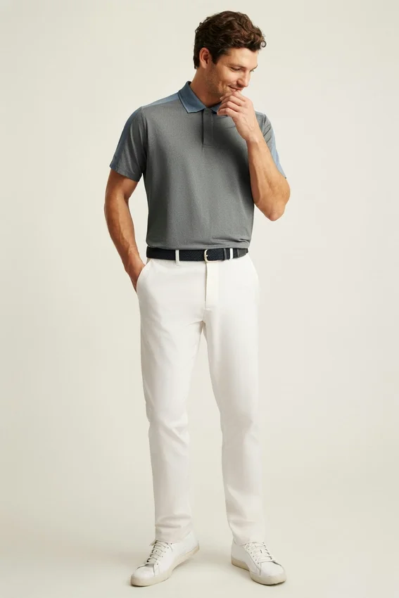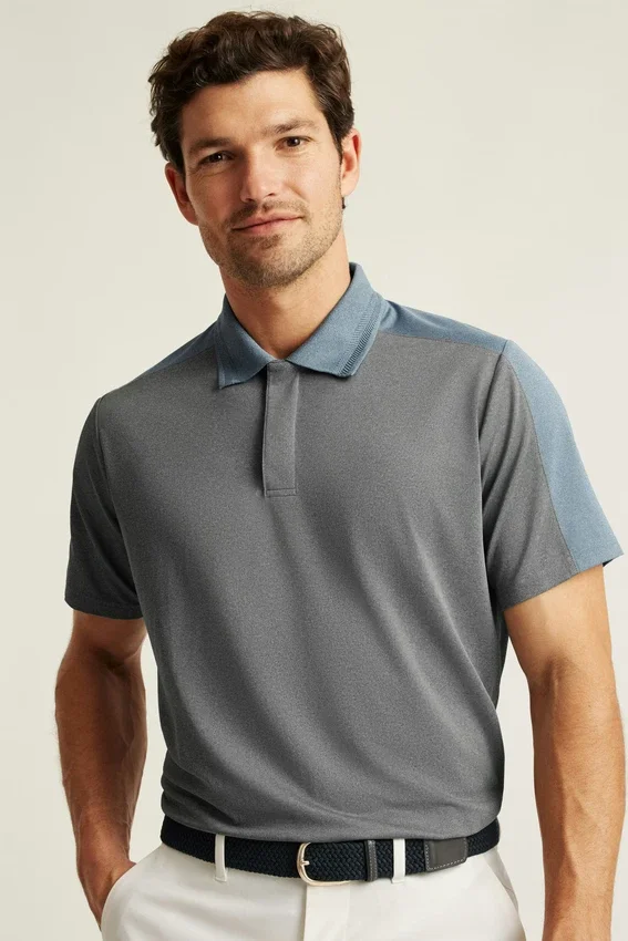 El estilo deportivo clásico se une a la tecnología moderna en nuestras camisas Tour Pique, que absorben la humedad y cuentan con elegantes paneles de colores contrastantes y tejido UPF ligero.