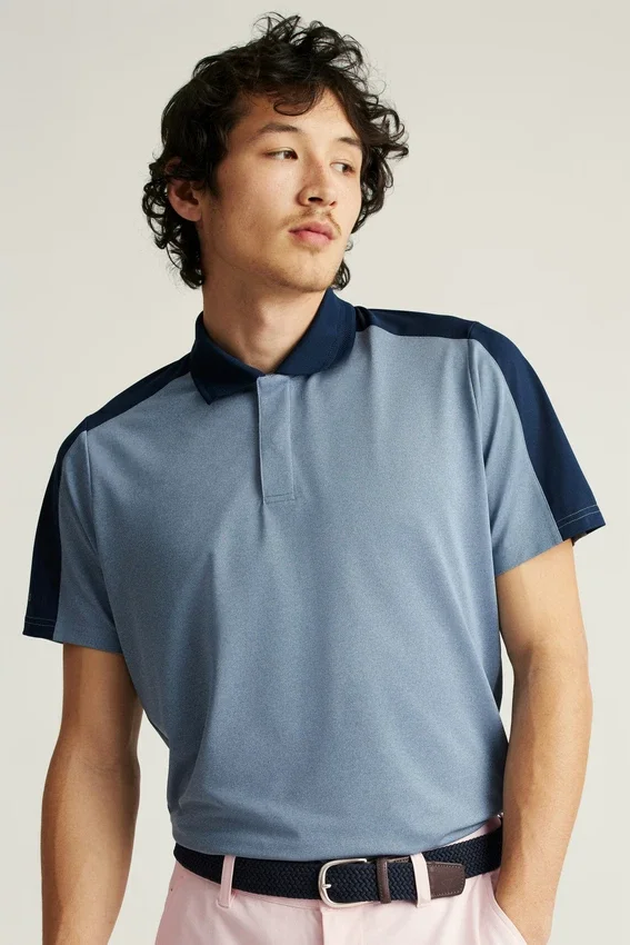 El estilo deportivo clásico se une a la tecnología moderna en nuestras camisas Tour Pique, que absorben la humedad y cuentan con elegantes paneles de colores contrastantes y tejido UPF ligero.