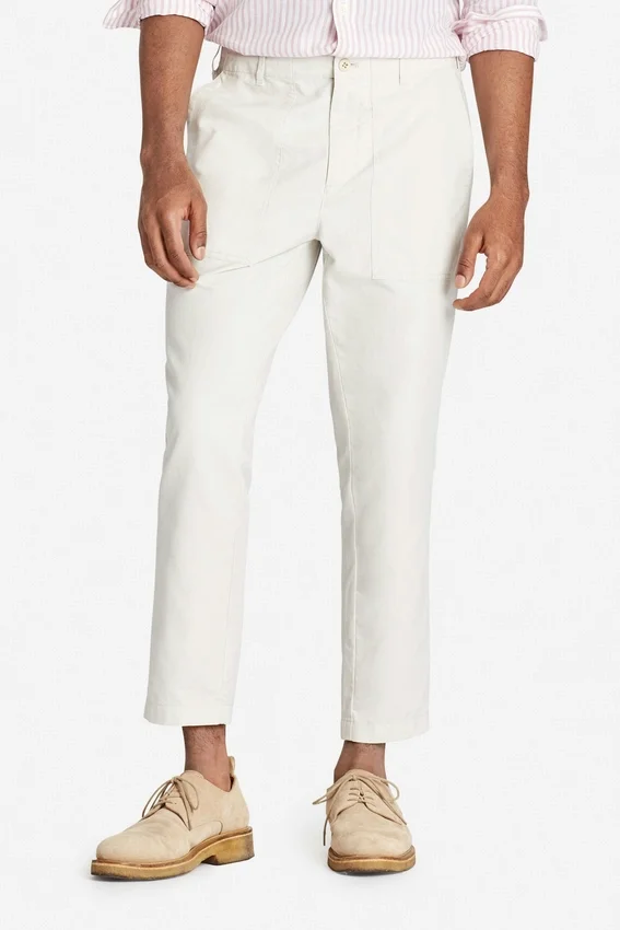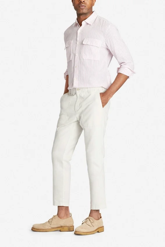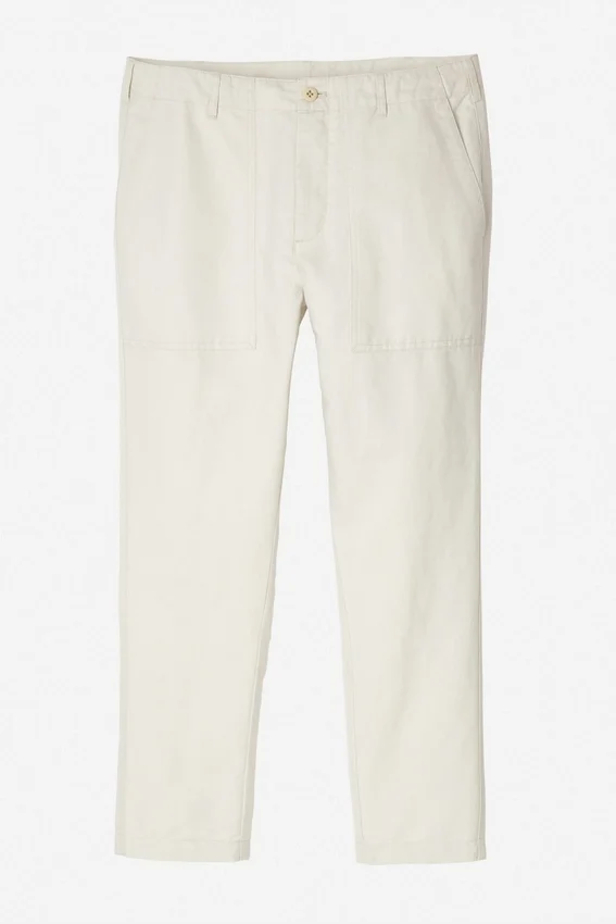 Tinte en prenda | Cordón interior en el centro delantero | Cierre de cremallera con botón en el centro delantero | Bolsillos de fatiga de parche | Bolsillos traseros de ribete con botones