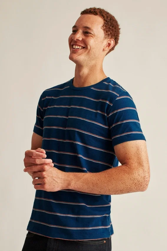 Tejido de jersey suave y ligero con rayas teñidas en hilo para un estilo casual
