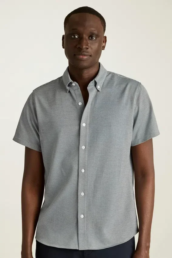 Micropatrón tricolor | Camisa de cuello y manga corta con la comodidad del tejido de punto