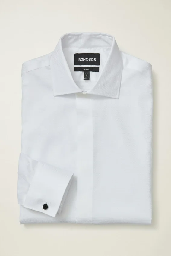¡Nuestra mejor camisa de esmoquin confeccionada con botones de nácar y canesú trasero dividido! ¡Diseñada con 78 % de algodón italiano, 18 % de poliamida y 4 % de elastano para mayor comodidad y durabilidad!