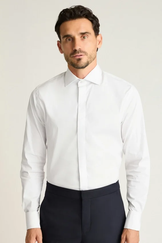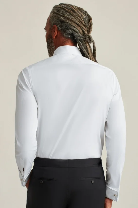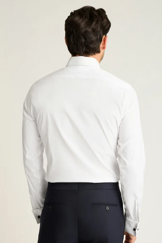 ¡Nuestra mejor camisa de esmoquin confeccionada con botones de nácar y canesú trasero dividido! ¡Diseñada con 78 % de algodón italiano, 18 % de poliamida y 4 % de elastano para mayor comodidad y durabilidad!