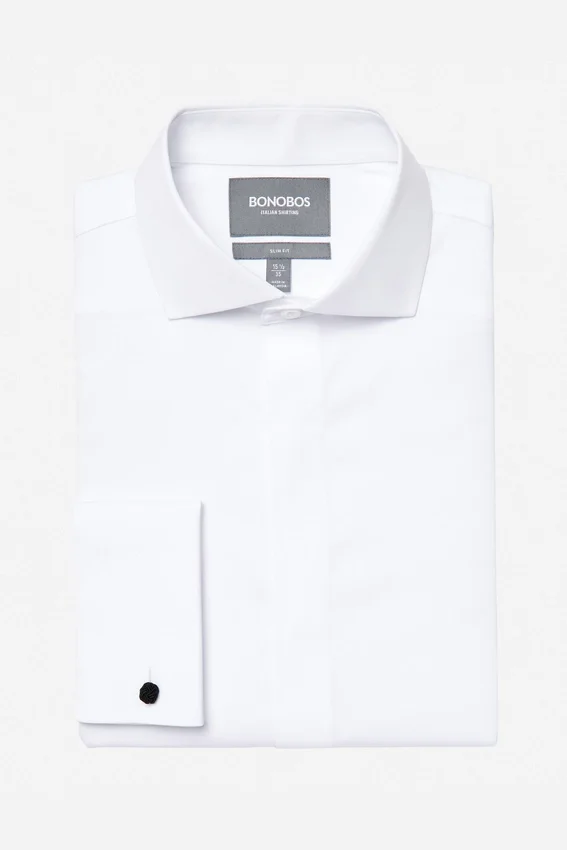 ¡Nuestra mejor camisa de esmoquin confeccionada con botones de nácar y canesú trasero dividido! ¡Diseñada con 78 % de algodón italiano, 18 % de poliamida y 4 % de elastano para mayor comodidad y durabilidad!