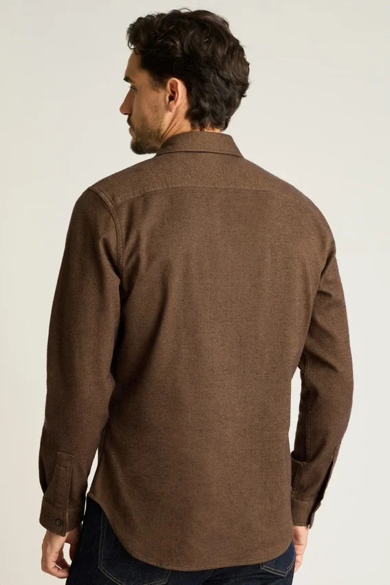 Tejido de franela elástico de tacto suave | Dos bolsillos en el pecho | Tejido gris jaspeado en el canesú interior de la espalda y en la tapeta interior de botones