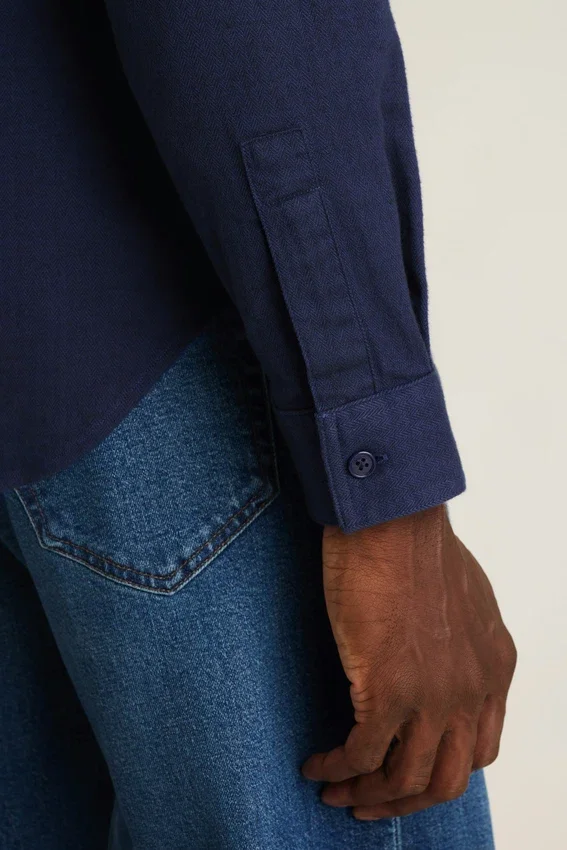 Tejido de franela elástico de tacto suave | Dos bolsillos en el pecho | Tejido gris jaspeado en el canesú interior de la espalda y en la tapeta interior de botones
