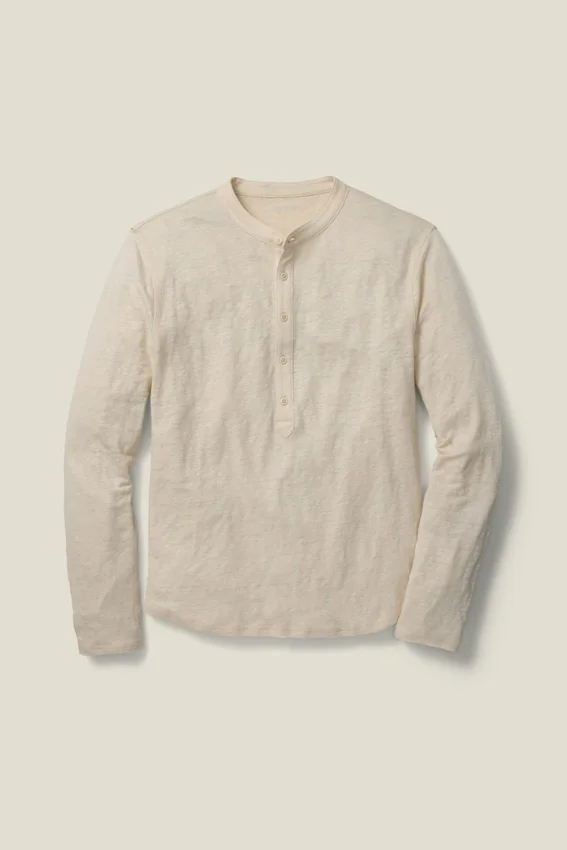 100 % lino con el aspecto elegante de una camisa de cuello de banda y la comodidad de una camisa sin botones.