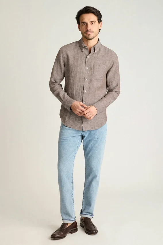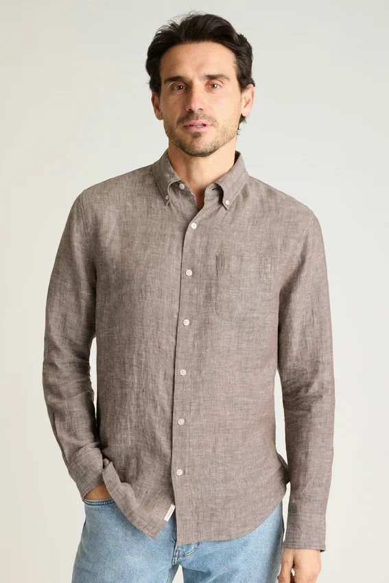 Lino lavado, ligero, fresco y suave, con una textura natural y sutil.