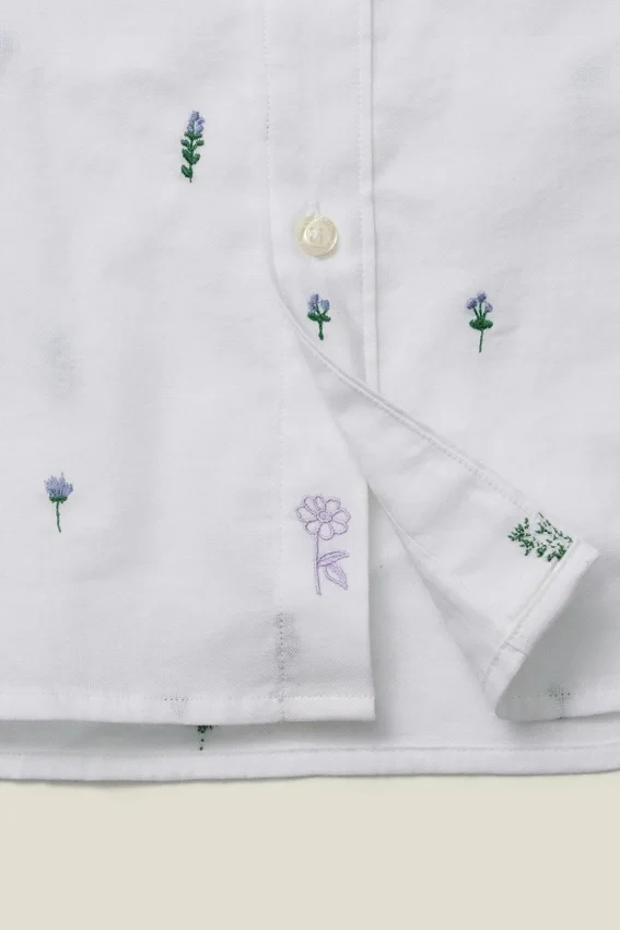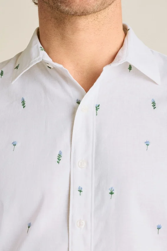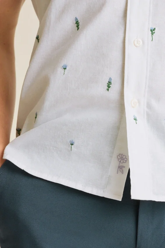 Bolsillo en el pecho | Dobladillo ligeramente curvado | Bordado floral de Bonobos debajo de la tapeta