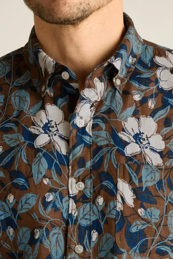Bolsillo en el pecho | Dobladillo sutilmente curvado | Bordado floral de Bonobos debajo de la tapeta