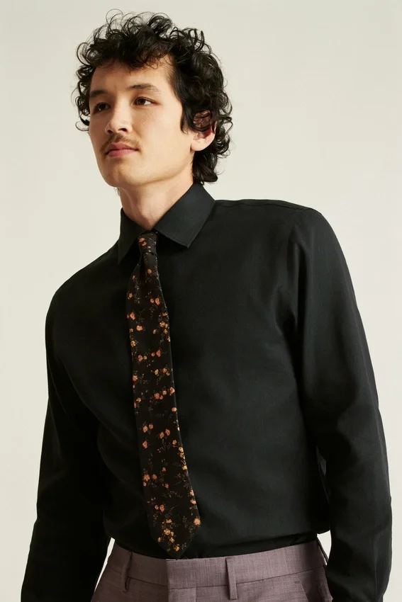 El modelo mide 1,88 m, tiene un contorno de pecho de 102 cm y lleva una talla M en Slim Fit.