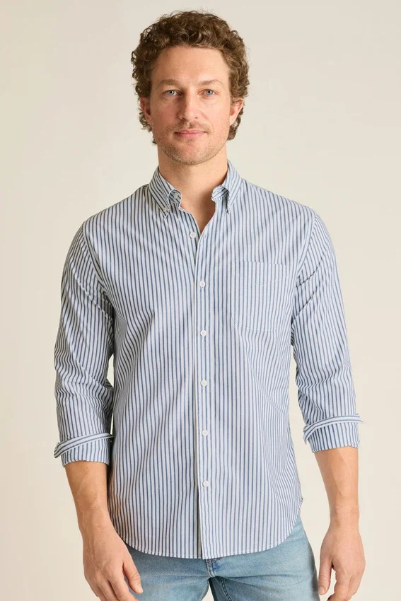 Para un estilo sencillo en el día a día, compra la camisa de manga larga elástica para el día a día de Bonobos, una camisa de algodón suave con botones para cualquier ocasión.