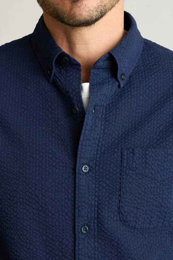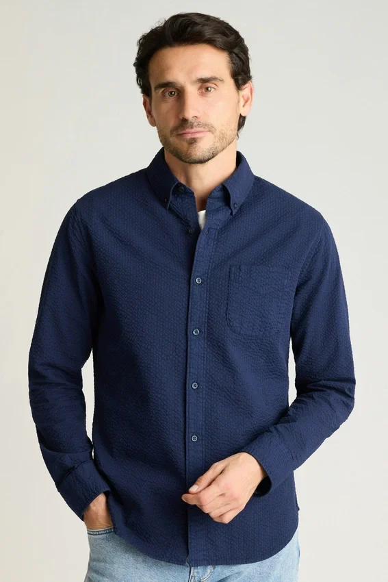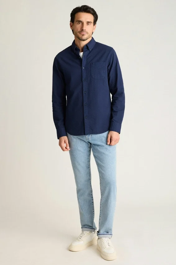 Cuello abotonado | Bolsillo delantero en el pecho | Puños con doble botón | Tejido elástico cómodo