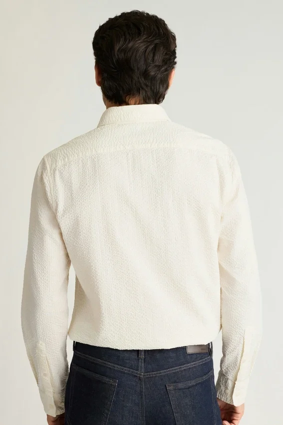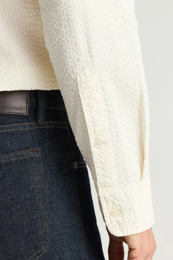 Cuello abotonado | Bolsillo delantero en el pecho | Puños con doble botón | Tejido elástico cómodo