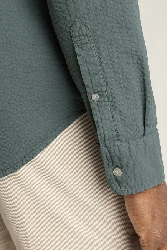 Cuello abotonado | Bolsillo delantero en el pecho | Puños con doble botón | Tejido elástico cómodo