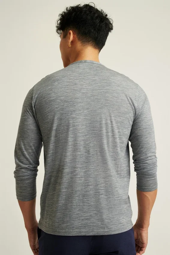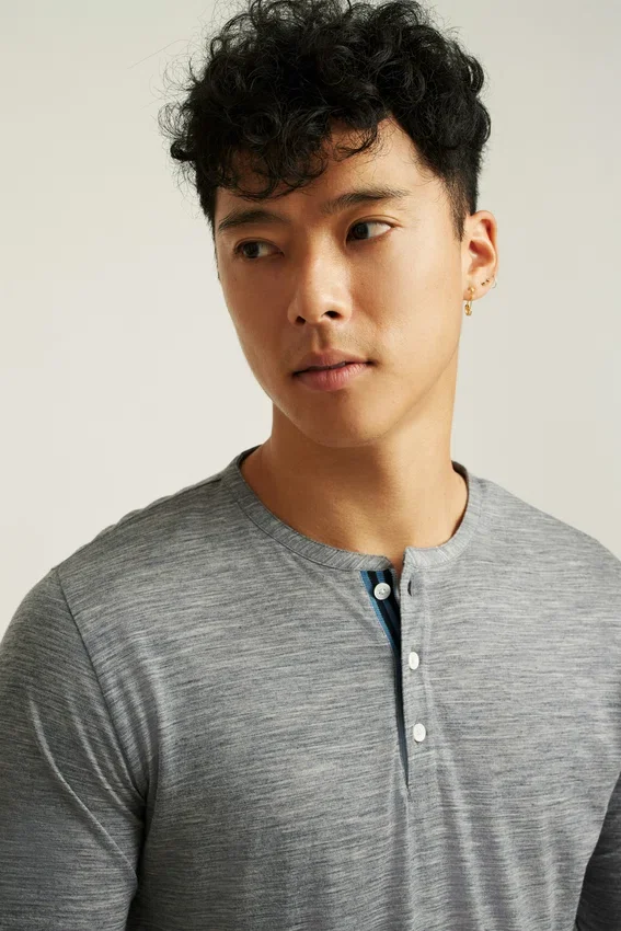 Camisa Henley de lana merino suave y transpirable