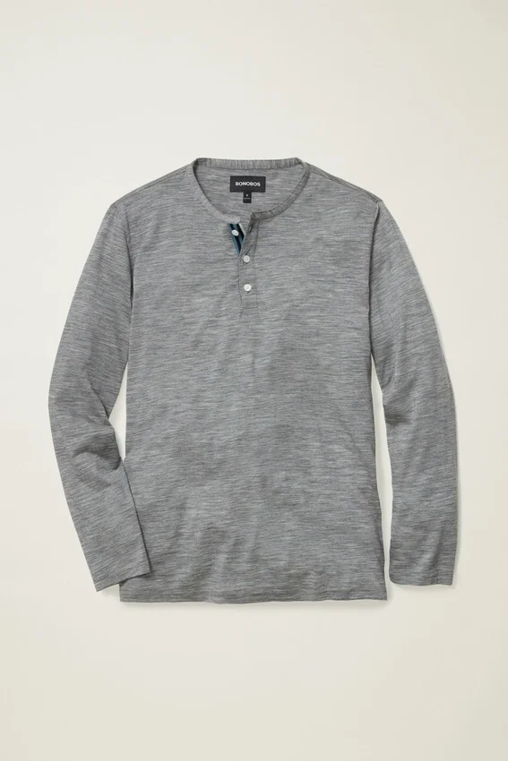 ¡Echa un vistazo a la camiseta Henley de lana merino de alto rendimiento de Bonobos! Vístete o abrígate con esta cómoda camiseta Henley de lana merino para mantenerte naturalmente abrigado y cómodo.