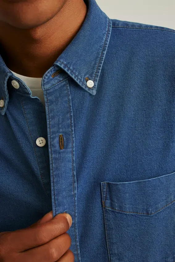 Cuello abotonado | Bolsillo en el pecho | Tejido vaquero elástico