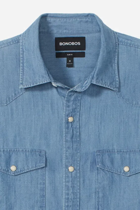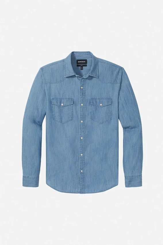 Cuello en punta | Bolsillos en el pecho | Camisa moderna de manga larga de inspiración western | Botones a presión perlados