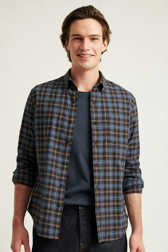 Con un tejido más ligero pero igual de cómodo, puedes combinar esta camisa de franela durante los cambios de estación.