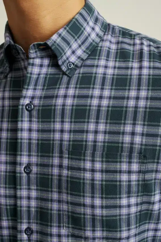 Con un tejido más ligero pero igual de cómodo, puedes combinar esta camisa de franela durante los cambios de estación.