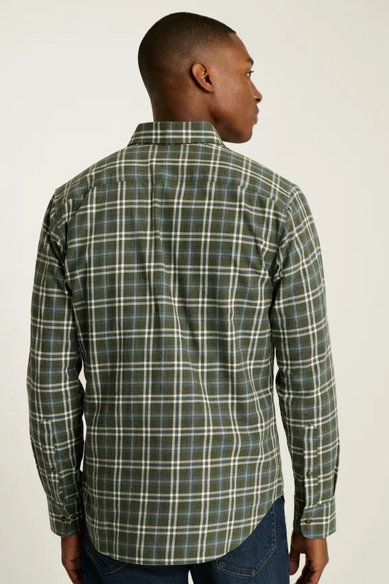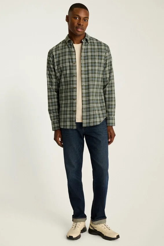 Con un tejido más ligero pero igual de cómodo, puedes combinar esta camisa de franela durante los cambios de estación.