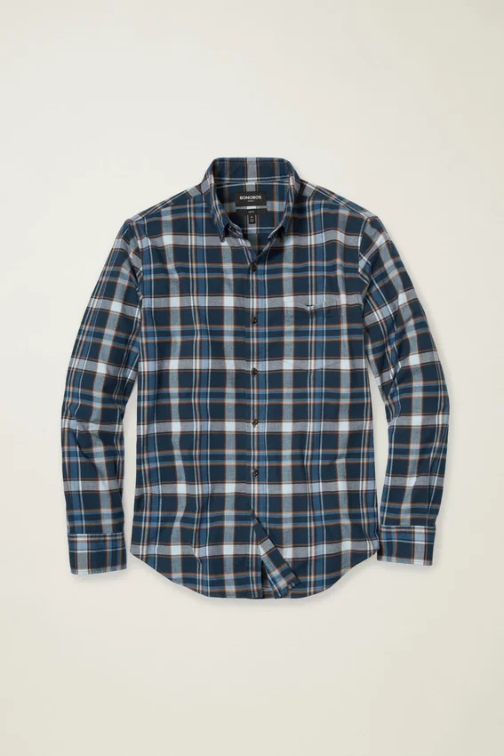 Con un tejido más ligero pero igual de cómodo, puedes combinar esta camisa de franela durante los cambios de estación.