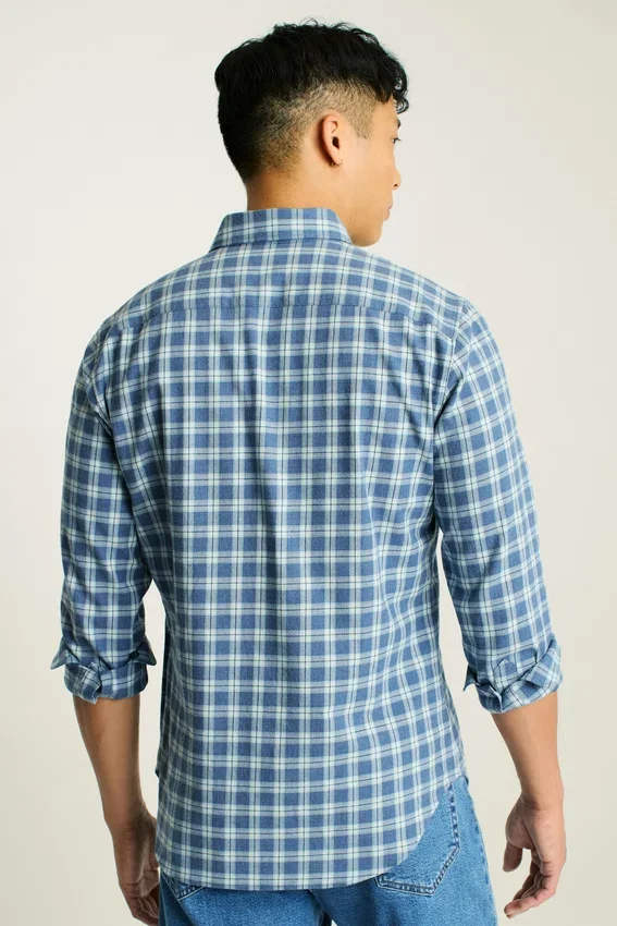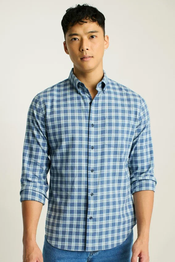 Con un tejido más ligero pero igual de cómodo, puedes combinar esta camisa de franela durante los cambios de estación.