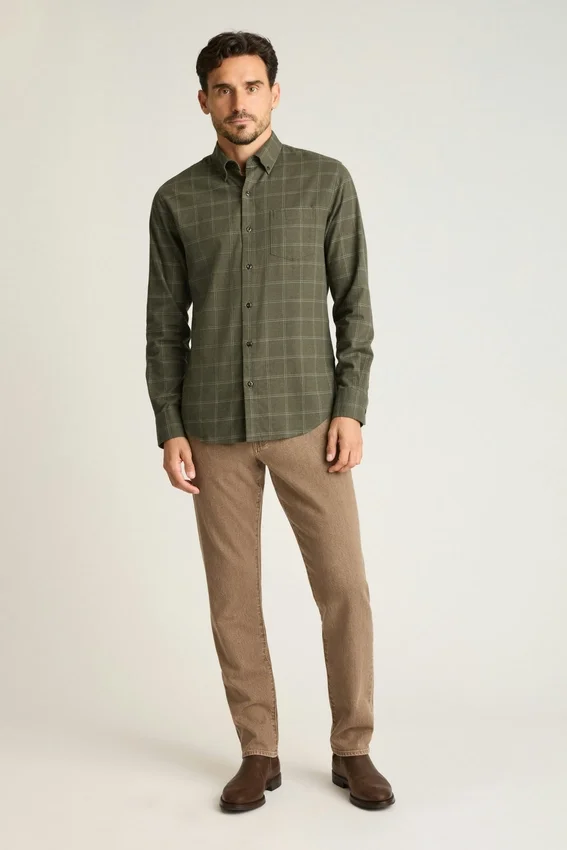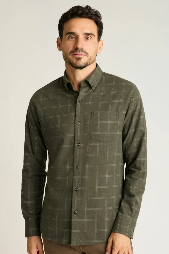 Con un tejido más ligero pero igual de cómodo, puedes combinar esta camisa de franela durante los cambios de estación.