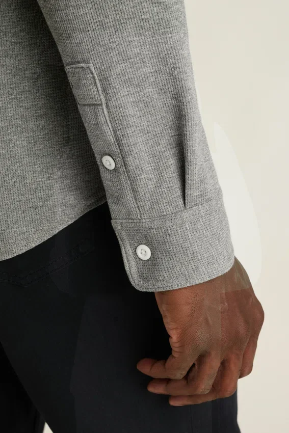 Tejido de punto waffle refinado y ligero | Cuerpo de camisa con cuello y la comodidad y elasticidad del punto | Botones en la parte delantera | Bolsillo en el pecho