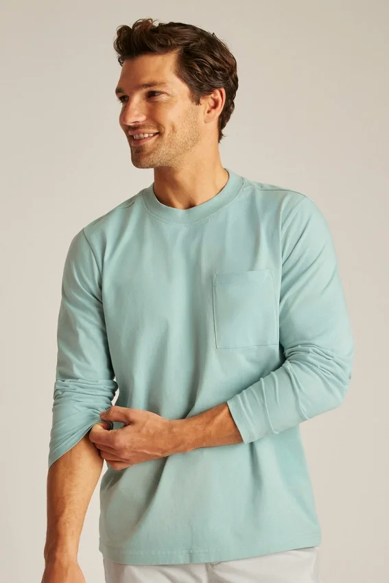 Tejido de jersey de peso medio en algodón suave y transpirable | Bolsillo en el pecho | Ribete acanalado en el cuello | Tejido de color contrastante en la parte interior trasera del cuello