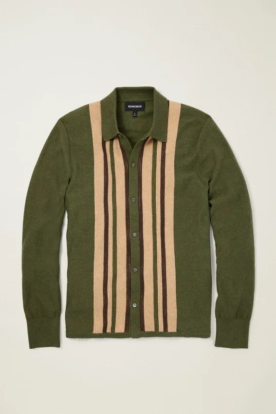 Hilo de algodón y cachemira supersuave | Rayas verticales texturizadas multicolores en la parte delantera | Color liso en la espalda y las mangas | Se puede llevar solo como camisa o abierto como cárdigan