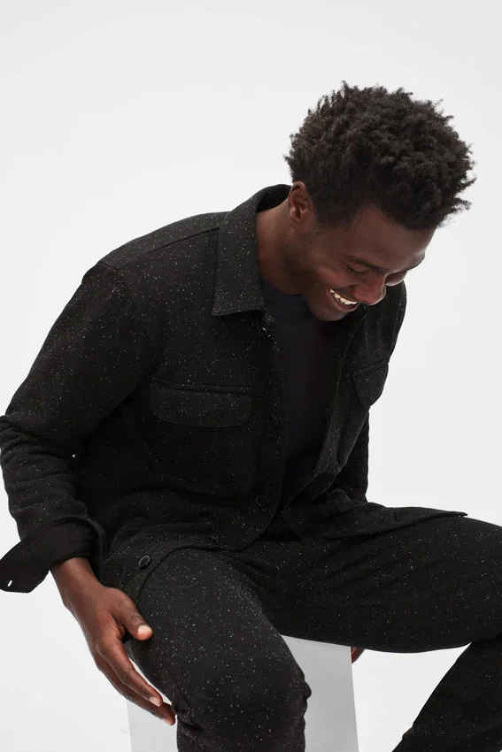 Chaqueta tipo camisa de punto polar supersuave con textura Donegal