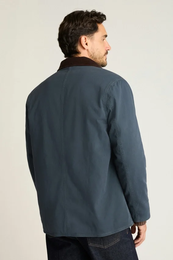 Forro de franela elástica | Cuello de pana en contraste | Bolsillo interior con cierre de botón | Forro elástico en las mangas