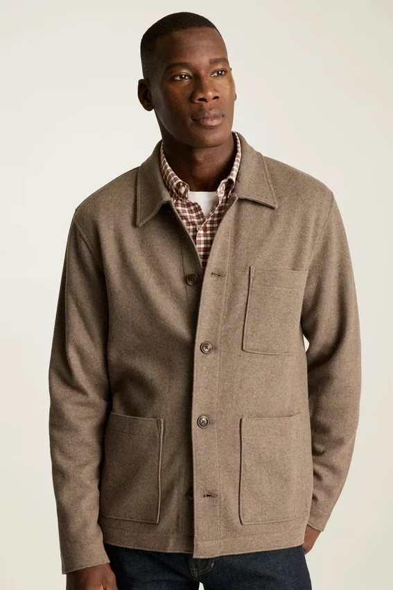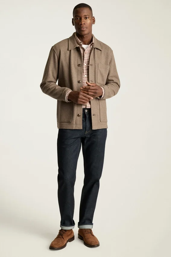 Descubre nuestra chaqueta Chore: una cómoda chaqueta de punto para hombre, confeccionada con tejido de doble cara para ofrecer un look elegante y versátil, además de calidez.