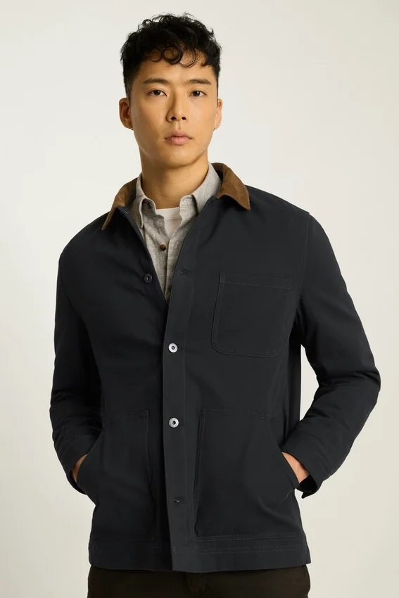 Bolsillo interior en la cadera | Cierre con lengüeta | Cuello de pana | Interior cálido con forro polar | Exterior de pana Bedford elástica