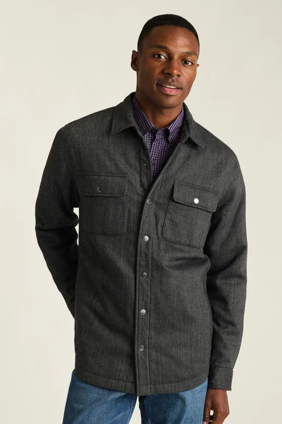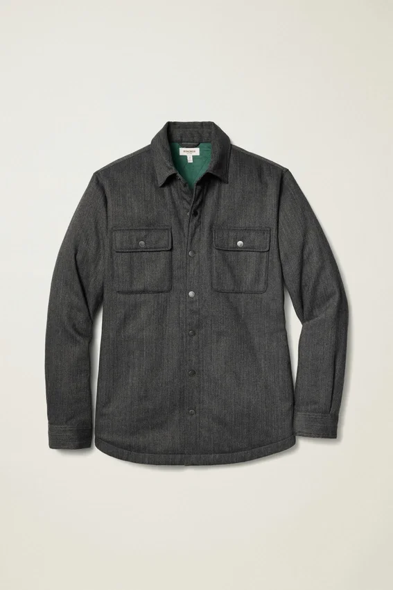 La chaqueta de sarga cepillada italiana de Bonobos combina una cómoda mezcla de lana con un ligero aislamiento. Una chaqueta para hombre que se lleva como una chaqueta de camisa y te mantiene abrigado.
