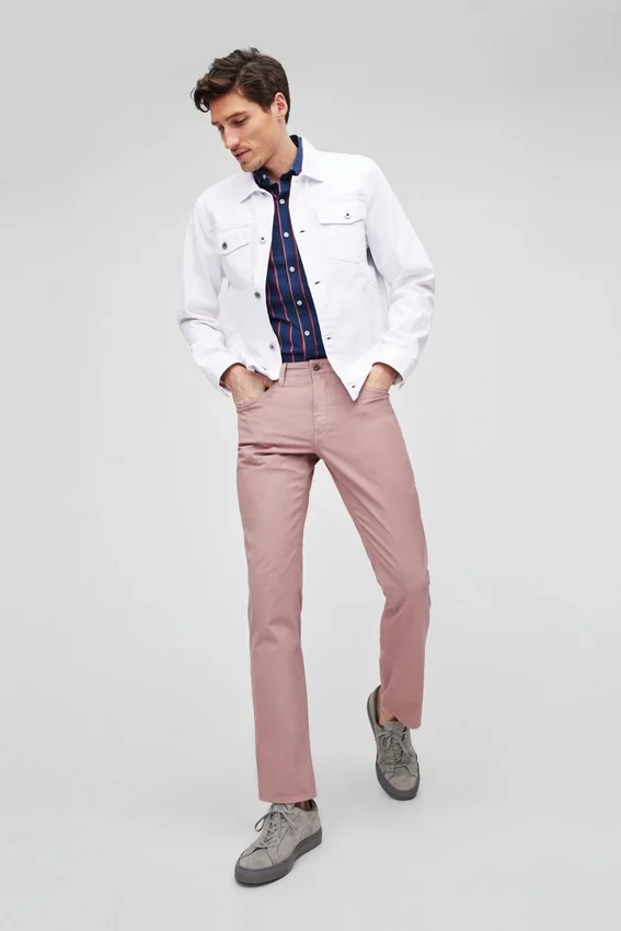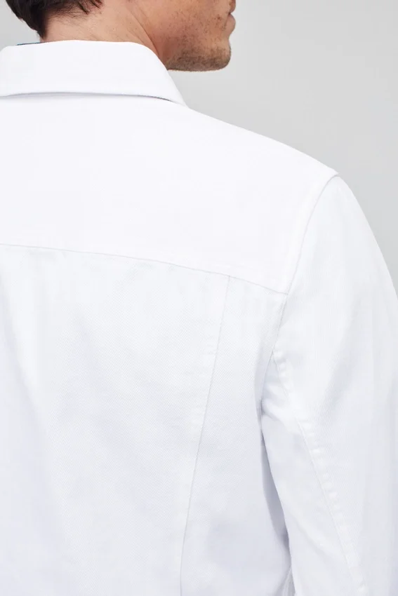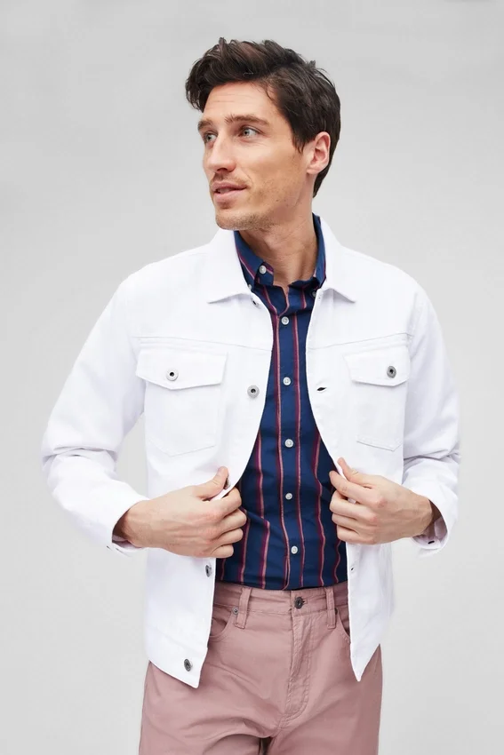 Bolsillos de solapa con parche | Bolsillos de mano con ribete simple | Detalles clásicos de doble costura | Botones clásicos de metal | Esta chaqueta está diseñada para un ajuste Slim Fit, pero cómodo.