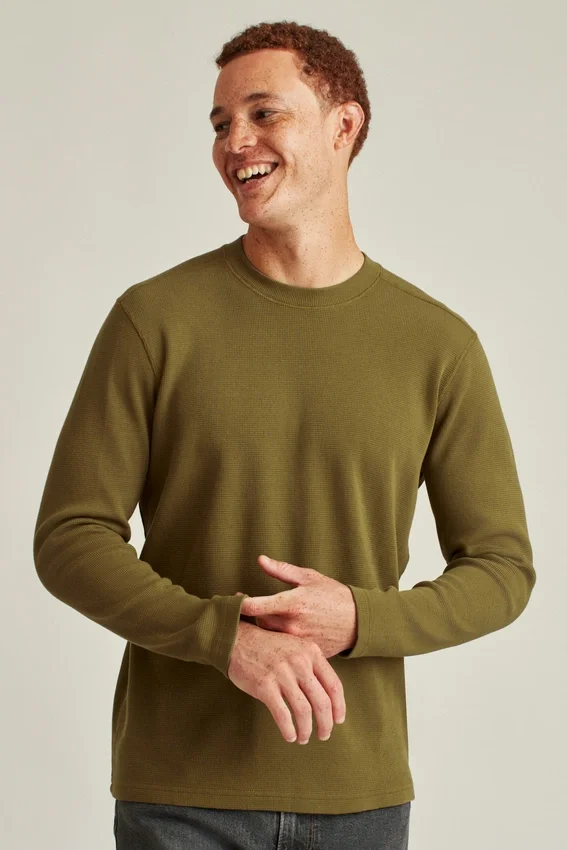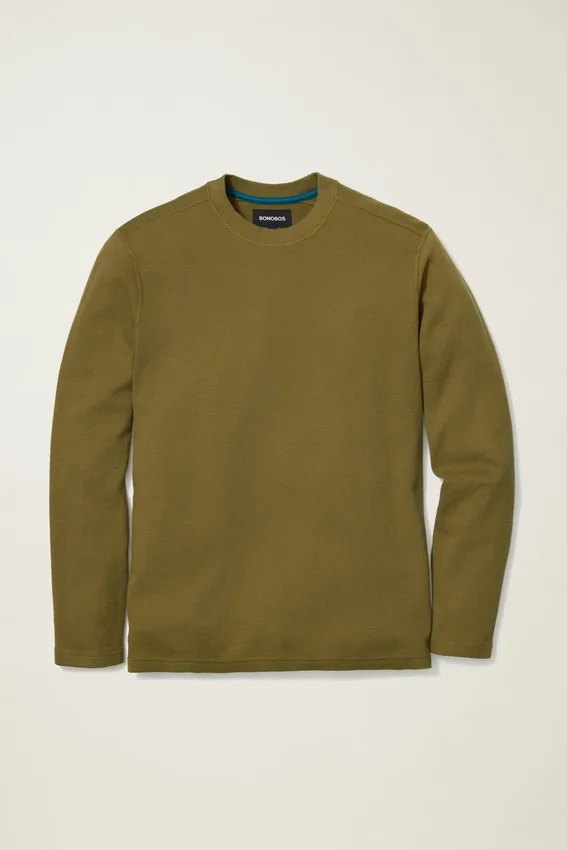 La suavidad y comodidad del algodón, con detalles de costura de recubrimiento, todo en un suéter elegante.
