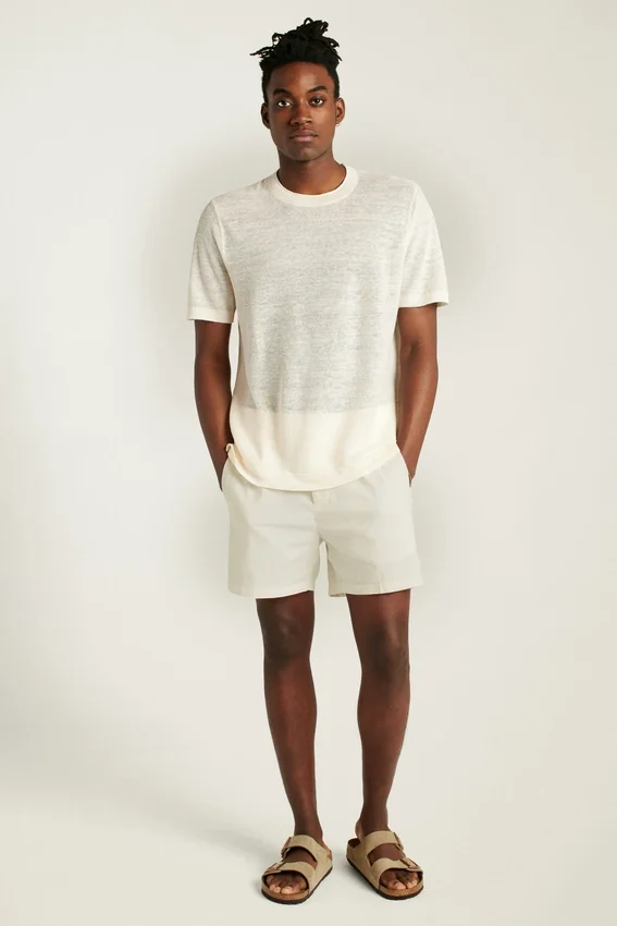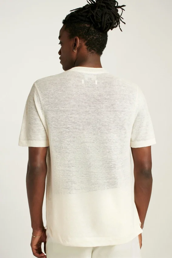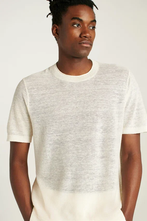 Silueta de camiseta en un hilo ligero 100 % lino de una fábrica italiana | Punto texturizado en toda la prenda para un estilo sofisticado e informal | Detalle de cuello enrollado en jersey | Sostenibilidad gracias al contenido de fibra de lino