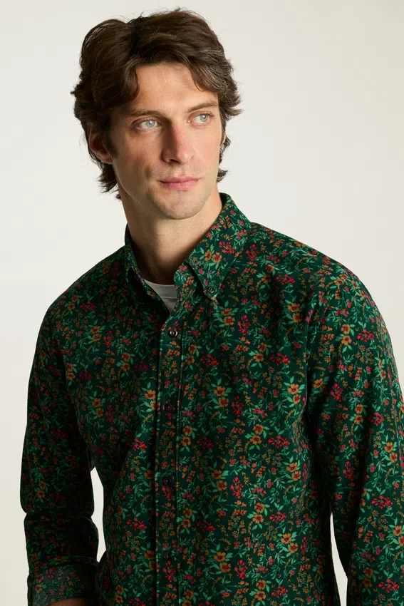 Cuello abotonado | Bolsillo delantero en el pecho | Tejido de pana elástica suave