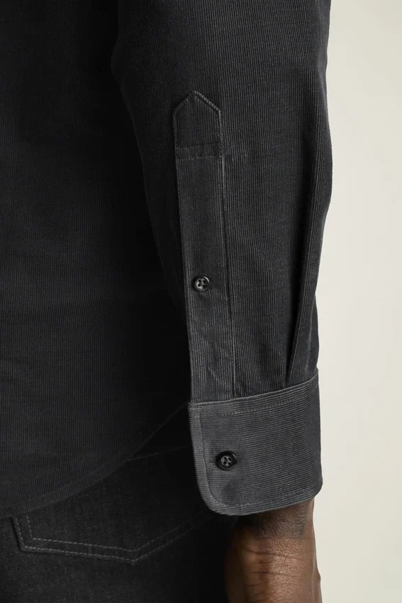 Cuello abotonado | Bolsillo delantero en el pecho | Tejido de pana elástica suave