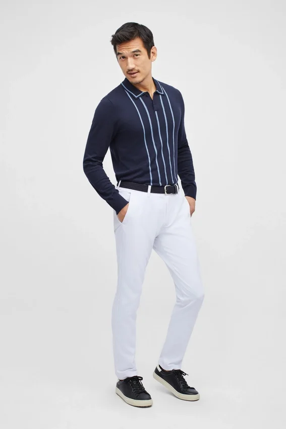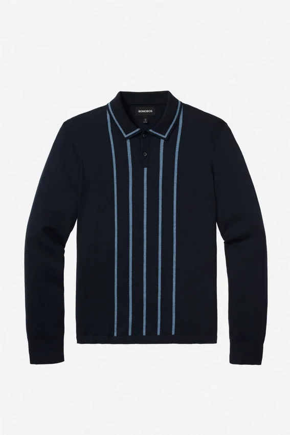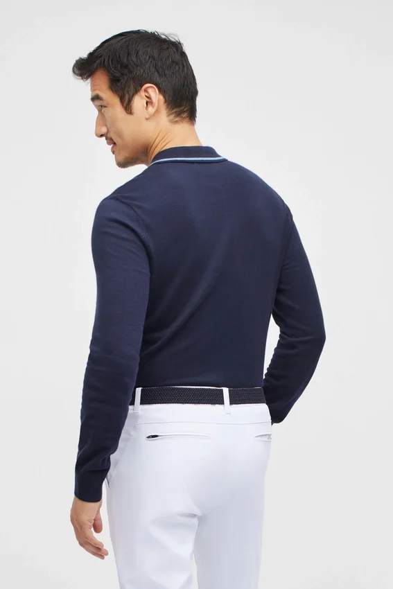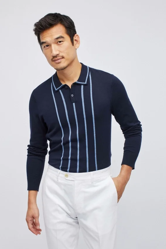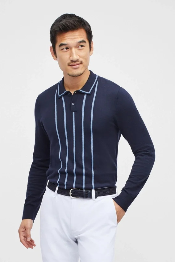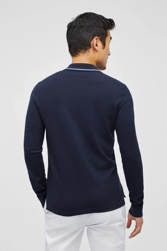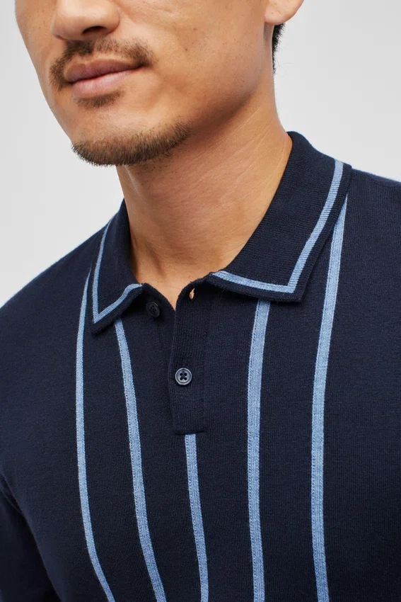 Tejido con Viloft®, un hilo que utiliza fibras totalmente naturales procedentes de pulpa de madera de origen sostenible | Polo ligero y transpirable | Rayas retro en contraste en la parte delantera | Ribetes en contraste en el cuello y los puños | Tapeta con botones